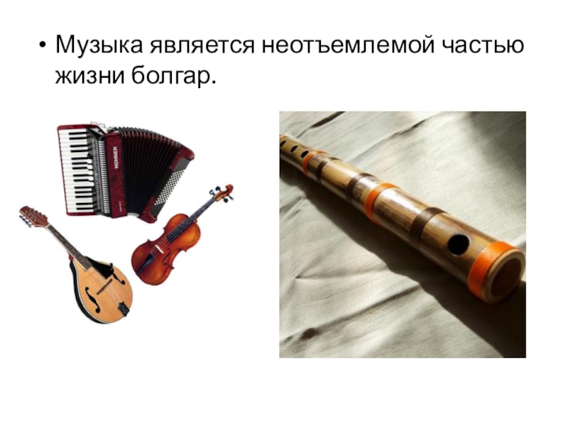 Слайд 14Музыка является неотъемлемой частью жизни болгар.
