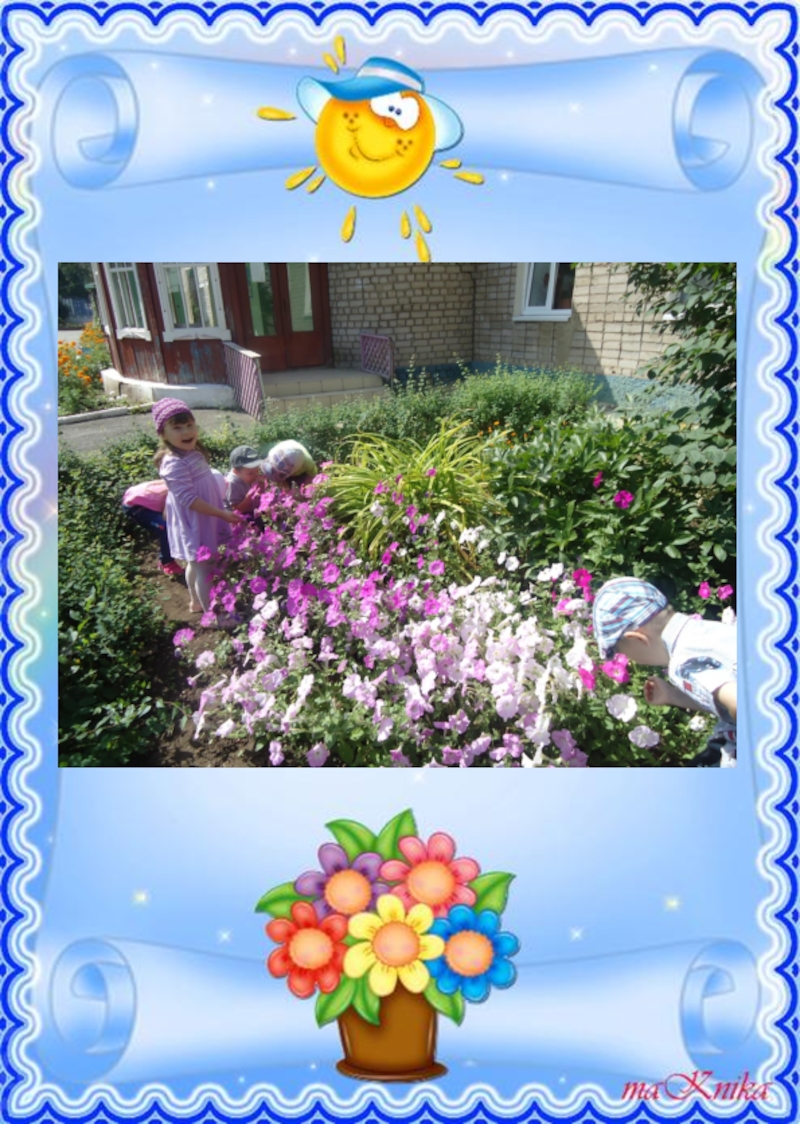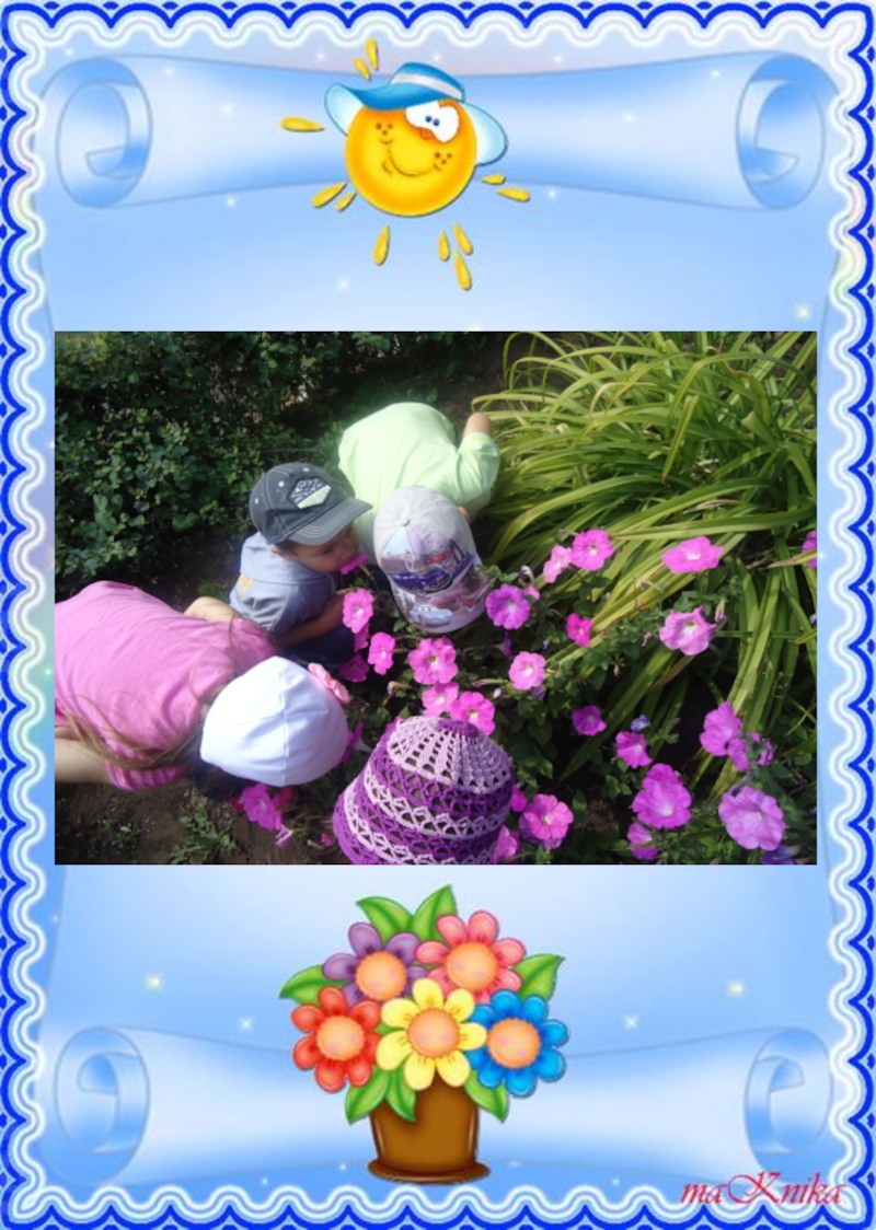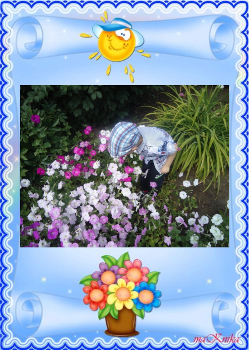 Воспитатель: Ребята, а еще наш зайчик пронес с собой не только картинки, но и цветочки. Расскажите мне и нашему гостю, что же есть у цветочков?