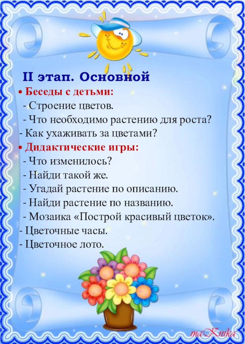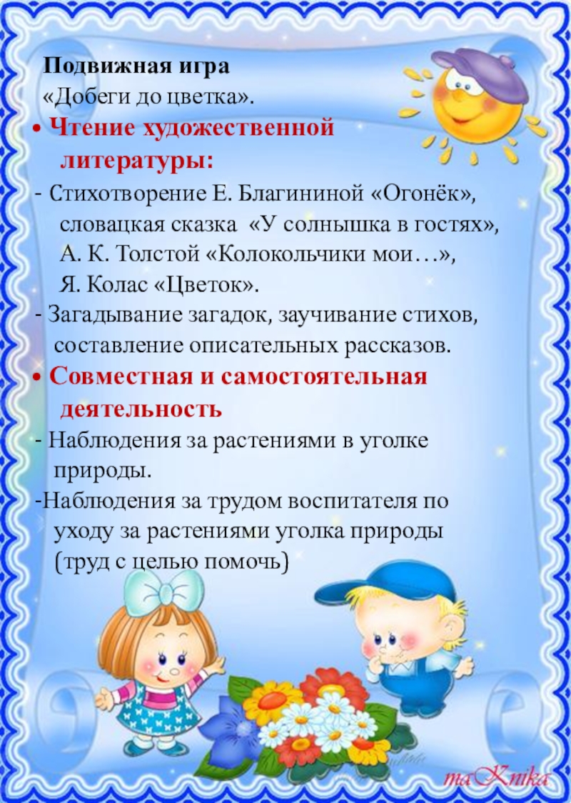 • Игровые: Физминутка «Во дворе растет подсолнух», Д\И «Собери