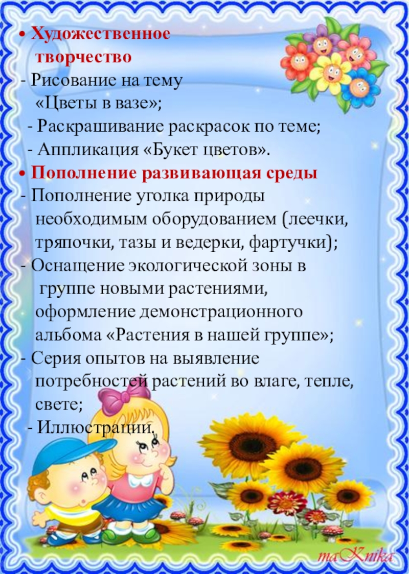 • Наглядные: иллюстрации комнатных растений, комнатные