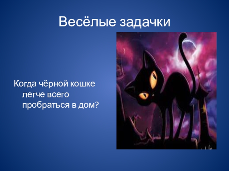 Весёлые задачкиКогда чёрной кошке легче всего пробраться в дом?