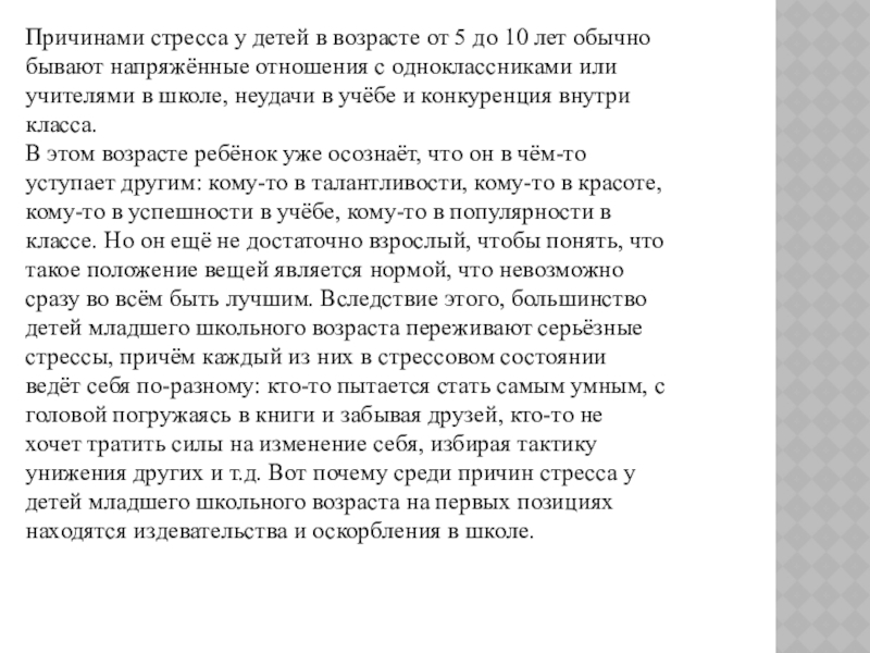 БОРЬБА СО СТРЕССОМ У ДЕТЕЙ МЛАДШЕГО ШКОЛЬНОГО ВОЗРАСТА