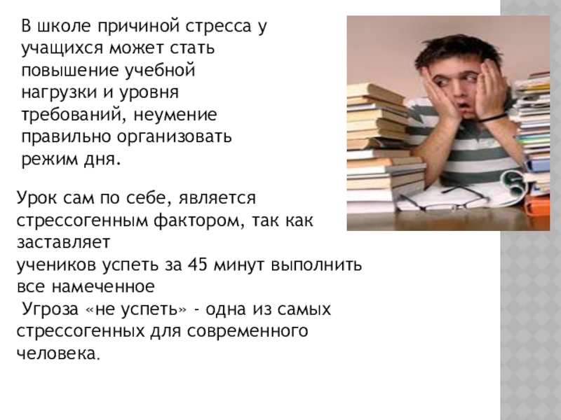 Урок сам по себе, является стрессогенным фактором, так как заставляет
