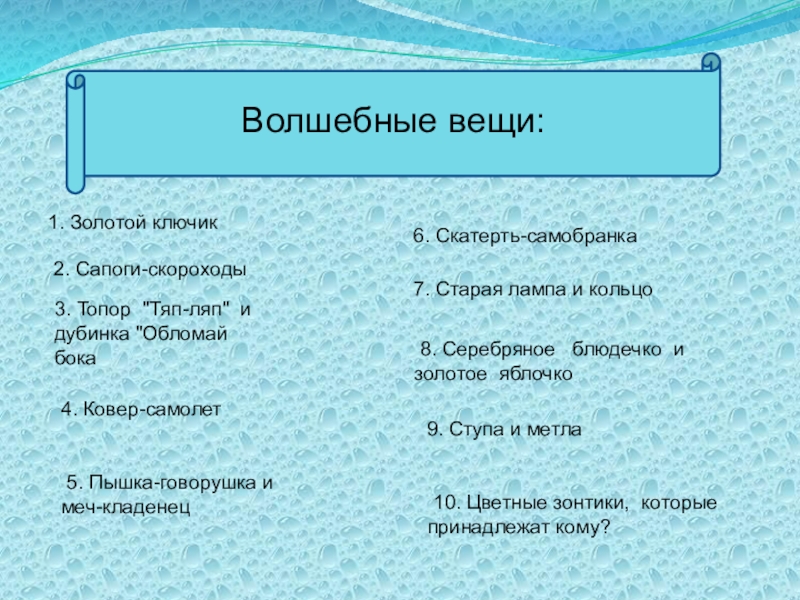 (из русской народной сказки "Поди туда - не знаю куда, принеси то - не знаю что").