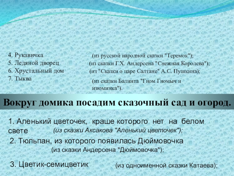 Вокруг домика посадим сказочный сад и огород.
