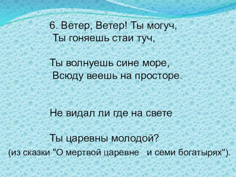 (из "Сказки о царе Салтане" А.С. Пушкина);