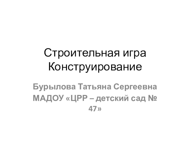 Строительная игра Конструирование Бурылова Татьяна СергеевнаМАДОУ «ЦРР – детский сад № 47»