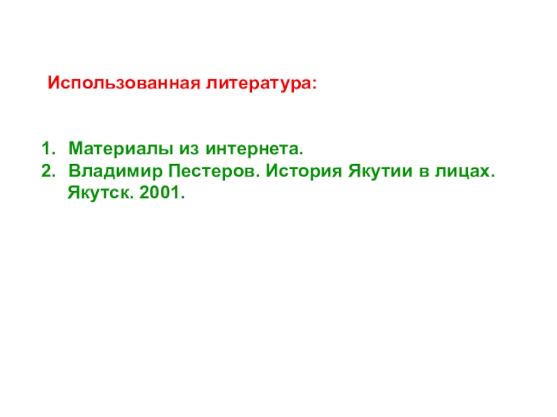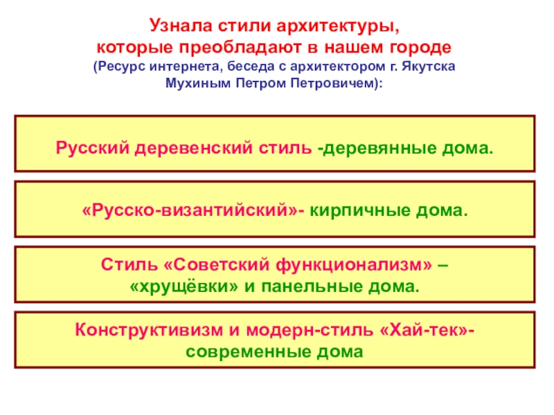 (Ресурс интернета, беседа с архитектором г. Якутска