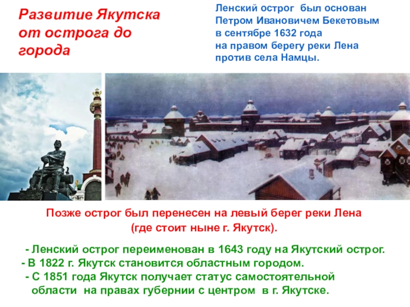 - С 1851 года Якутск получает статус самостоятельной