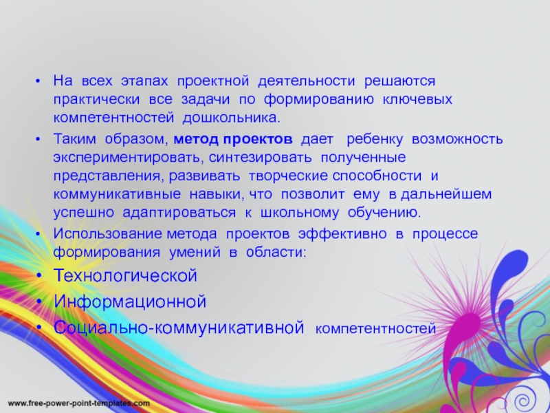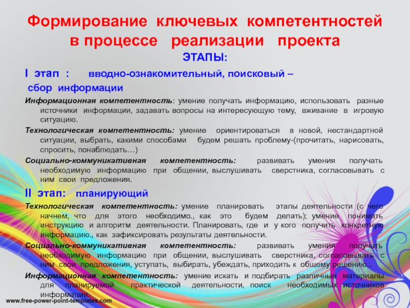 Слайд 12Формирование ключевых компетентностей в процессе реализации проекта
