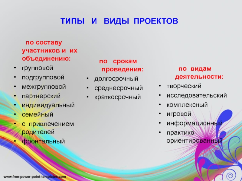Слайд 5ТИПЫ И ВИДЫ ПРОЕКТОВ