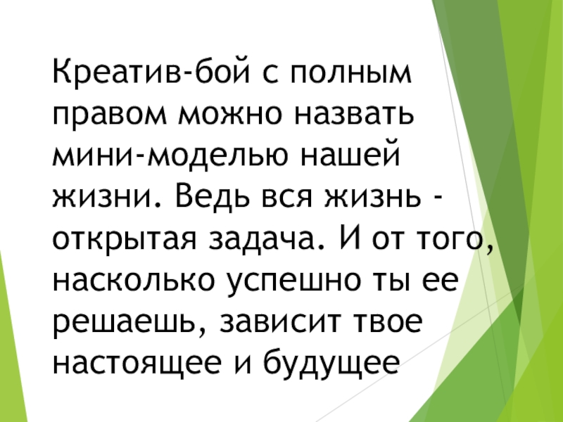 Слайд 3Креатив-бой с полным правом можно назвать мини-моделью нашей жизни. Ведь вся