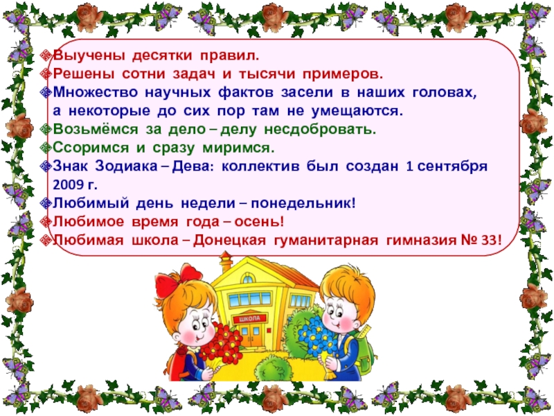 Это сайт презентаций, где можно хранить и обмениваться своими презентациями, докладами, проектами, шаблонами в формате PowerPoint с другими пользователями. Мы помогаем школьникам, студентам, учителям, преподавателям хранить и обмениваться учебными материалами.
