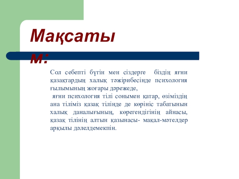 Сол себепті бүгін мен сіздерге біздің яғни қазақтардың халық тәжірибесінде психология