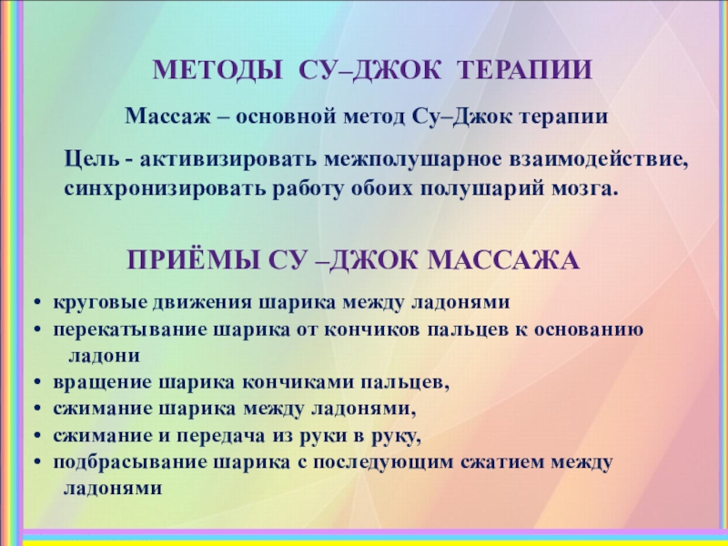 ПРИЁМЫ СУ –ДЖОК МАССАЖА
