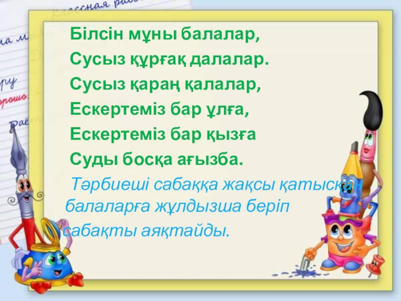 Слайд 11 Білсін мұны балалар,