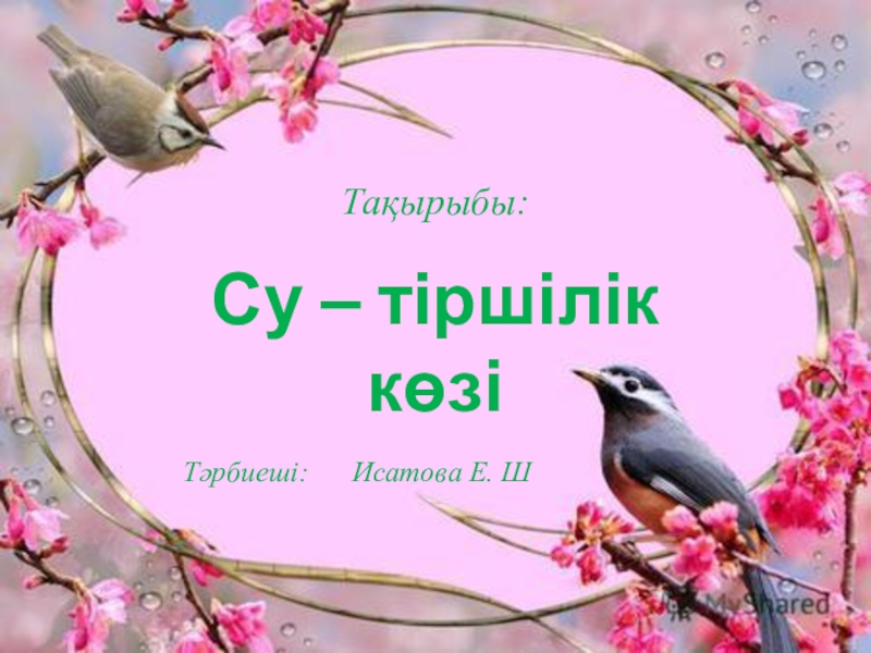 Тақырыбы:Су ‒ тіршілік көзіТәрбиеші:   Исатова Е. Ш