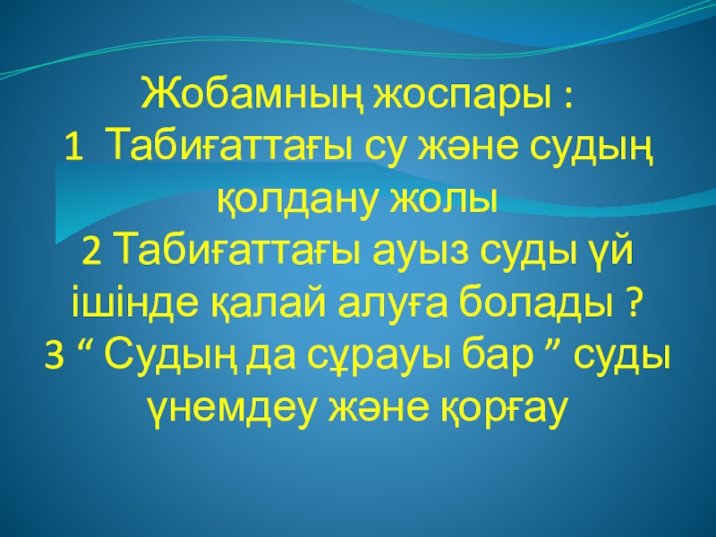 Слайд 4Жобамның жоспары :
