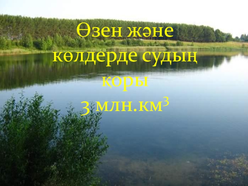 Слайд 13Өзен және көлдерде судың қоры