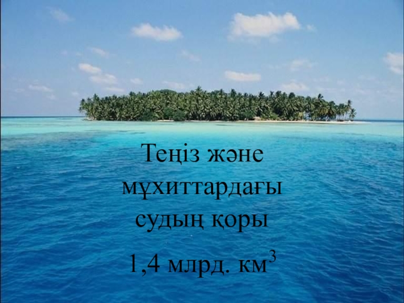 Слайд 12Теңіз және мұхиттардағы судың қоры