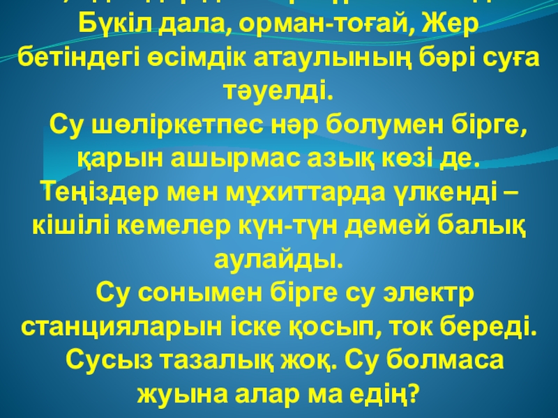 -Біздің өмірімізге судың маңызы