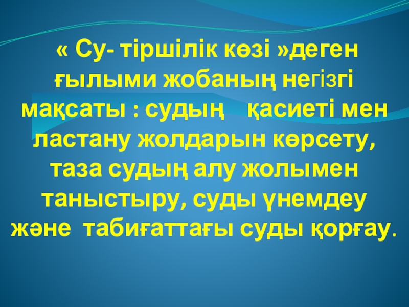 Слайд 5 « Су- тіршілік көзі »деген ғылыми жобаның негізгі мақсаты :