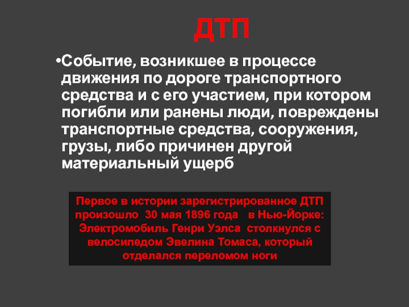 Первое в истории зарегистрированное ДТП