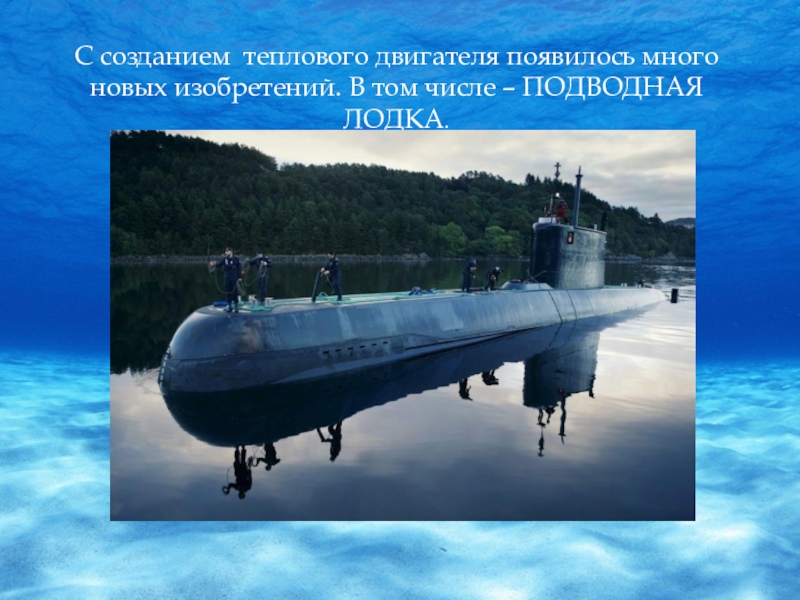 С созданием теплового двигателя появилось много новых изобретений. В том числе – ПОДВОДНАЯ ЛОДКА.