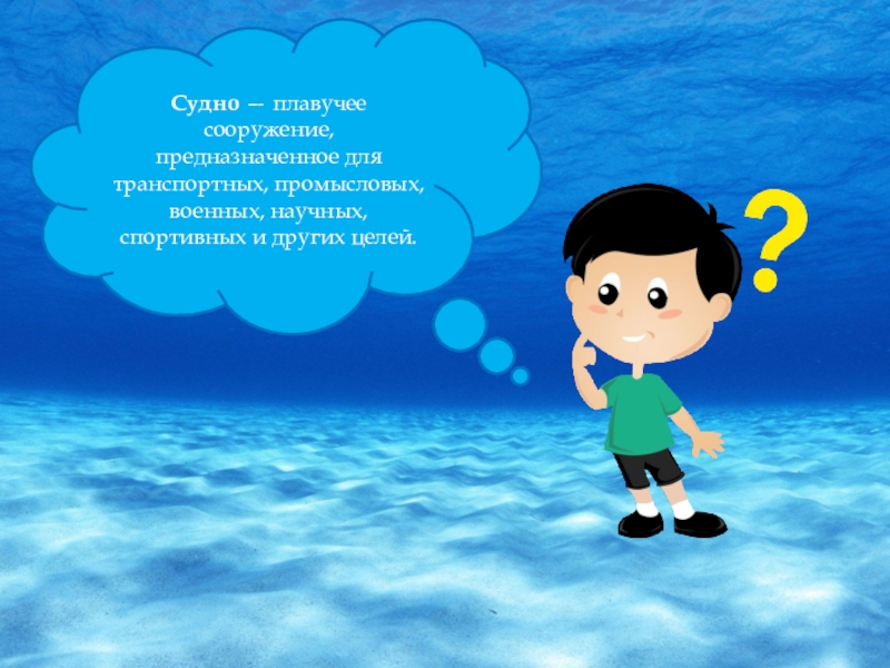 Судно – это?Судно — плавучее сооружение, предназначенное для транспортных, промысловых, военных, научных, спортивных и других целей.