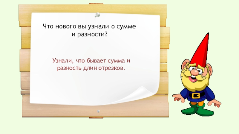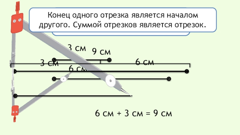 Конец одного отрезка является началом другого. Суммой отрезков является отрезок.