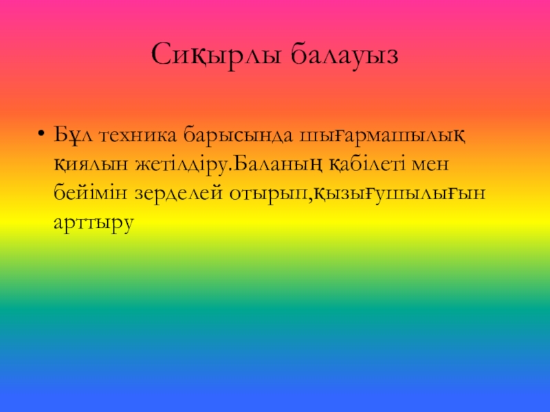 Бұл техника барысында шығармашылық қиялын жетілдіру.Баланың қабілеті мен бейімін зерделей