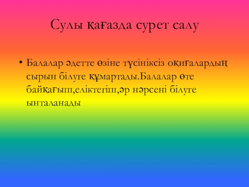 Сулы қағазда сурет салуБалалар әдетте өзіне түсініксіз оқиғалардың сырын білуге құмартады.Балалар өте байқағыш,еліктегіш,әр нәрсені білуге ынталанады