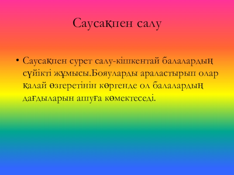 Саусақпен салуСаусақпен сурет салу-кішкентай балалардың сүйікті жұмысы.Бояуларды араластырып олар қалай өзгеретінін көргенде ол балалардың дағдыларын ашуға көмектеседі.