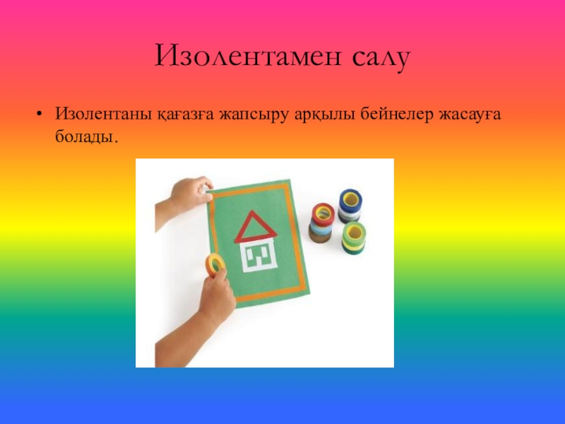 Изолентамен салуИзолентаны қағазға жапсыру арқылы бейнелер жасауға болады.