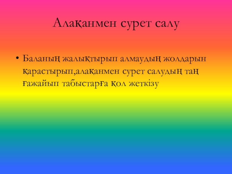 Алақанмен сурет салуБаланың жалықтырып алмаудың жолдарын қарастырып,алақанмен сурет салудың таң ғажайып табыстарға қол жеткізу