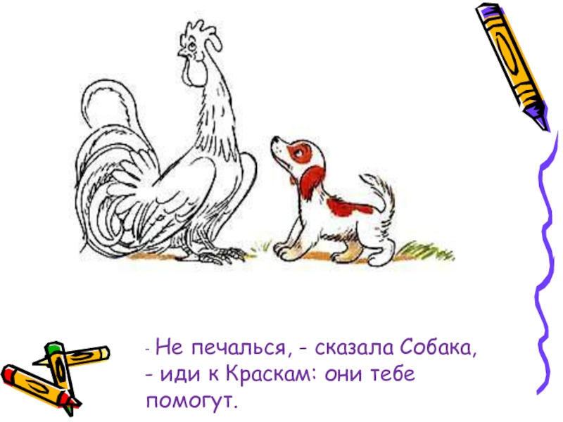 Слайд 4- Не печалься, - сказала Собака, - иди к Краскам: они