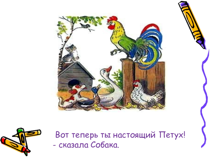 Слайд 10 Вот теперь ты настоящий Петух! - сказала Собака.