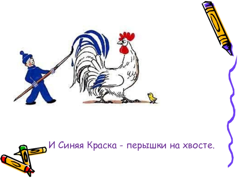 Слайд 7И Синяя Краска - перышки на хвосте.