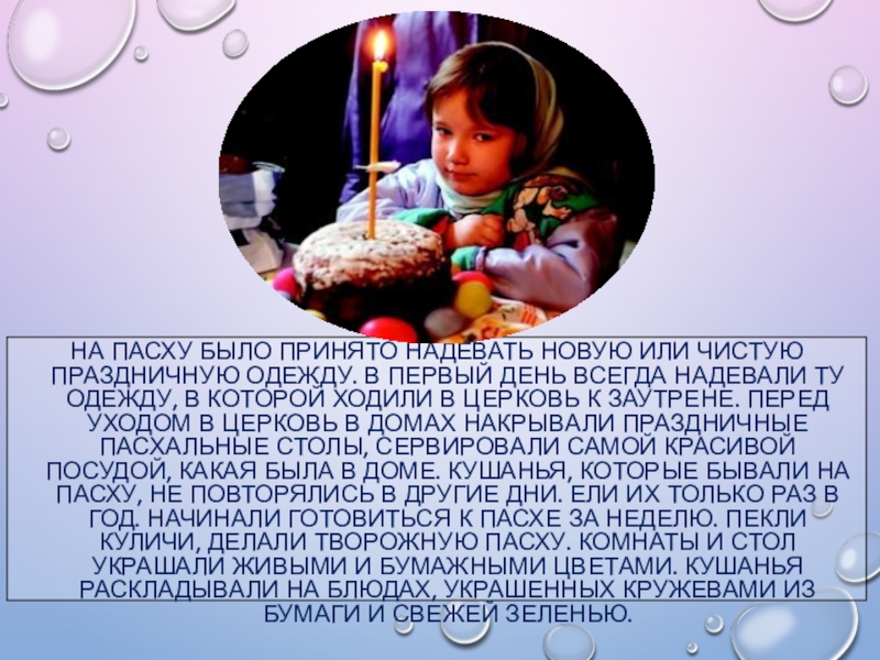 Слайд 6На Пасху было принято надевать новую или чистую праздничную одежду. В