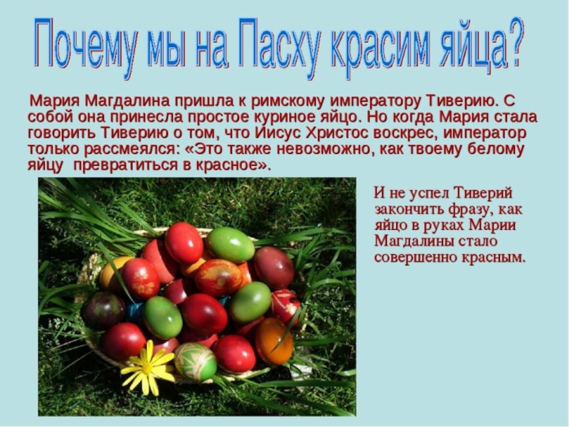 - познакомить детей с православным праздником «Светлое Воскресение Христово», с его историей;