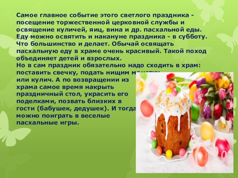 Слайд 4Самое главное событие этого светлого праздника -