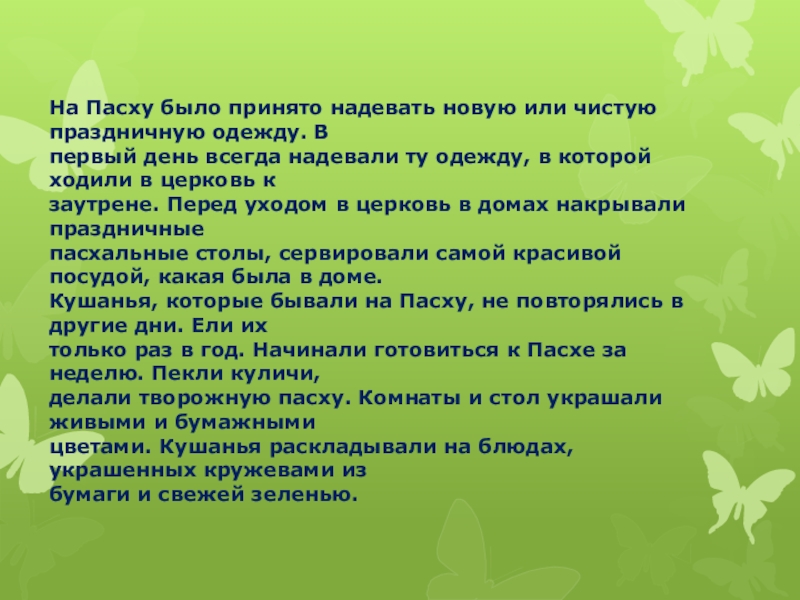 Слайд 5На Пасху было принято надевать новую или чистую праздничную одежду. В