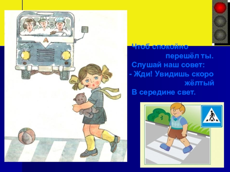 Чтоб спокойно        перешёл ты.Слушай наш совет: Жди! Увидишь скоро
