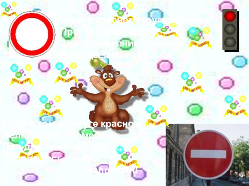 Если в красном круге млечномПросто белое пятно,Здесь движение, конечно.Вообще запрещено!Если в том же круге красномБелый минус помещён,При