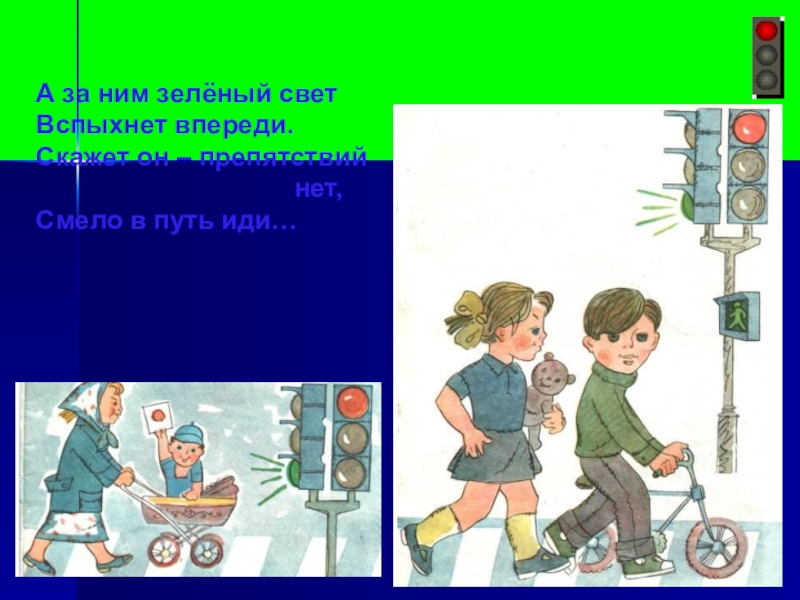 А за ним зелёный светВспыхнет впереди.Скажет он – препятствий
