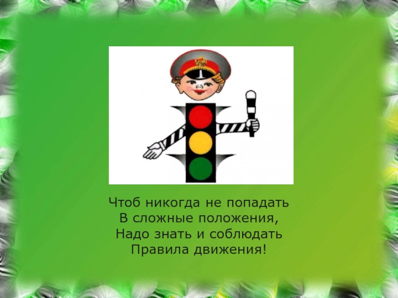 Слайд 7 Чтоб никогда не попадать В сложные положения, Надо знать и соблюдать Правила