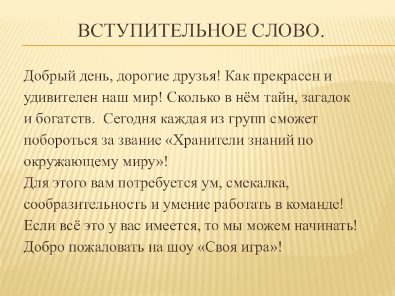 « Своя игра»