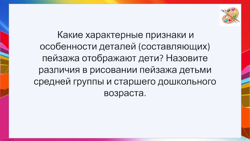 Слайд 29 Какие характерные признаки и особенности деталей (составляющих) пейзажа отображают дети?