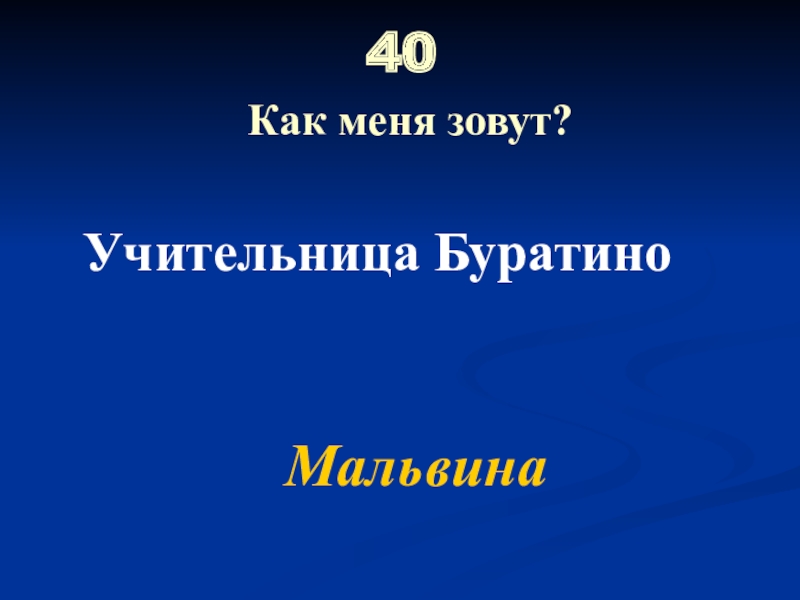 40  Как меня зовут?Учительница БуратиноМальвина