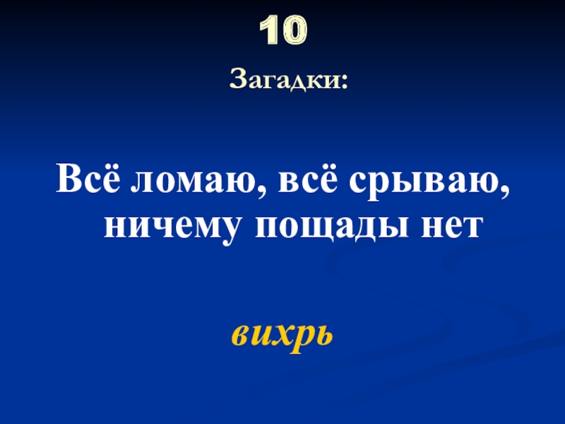 10  Загадки: Всё ломаю, всё срываю, ничему пощады нетвихрь